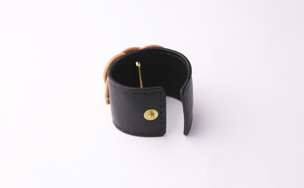 シック黒地に皮の結びが、