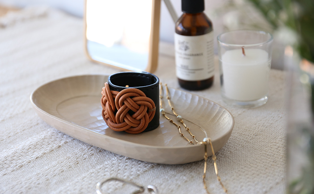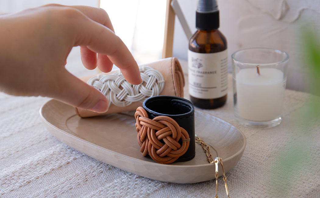 | 素材 | ベース: 日本原皮の牛ヌメ革(タンニンなめし) 飾り結び:牛革紐 |