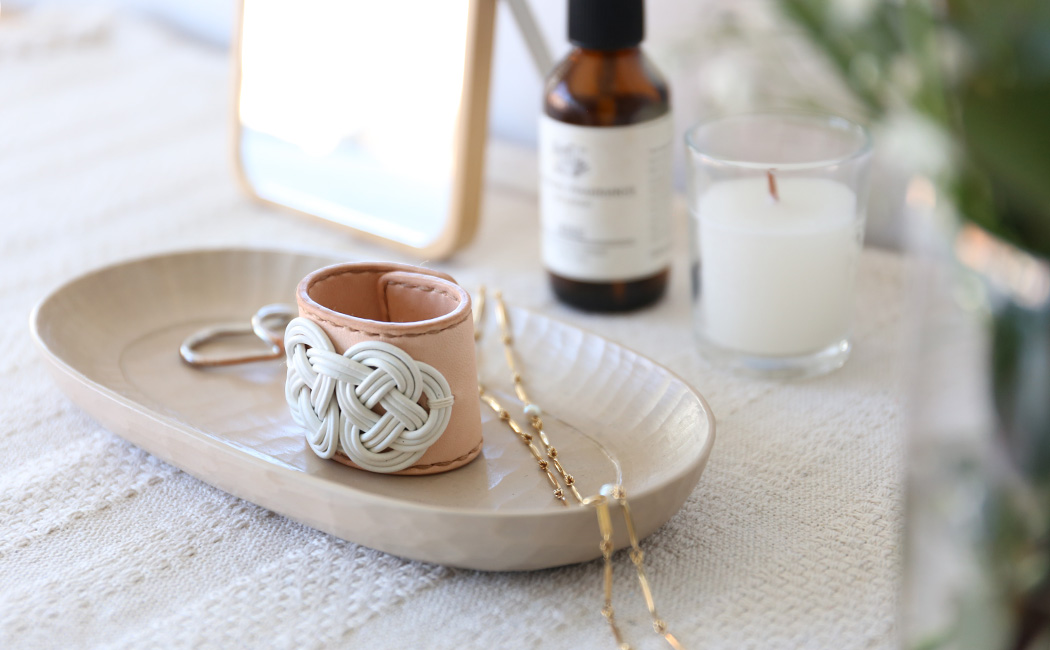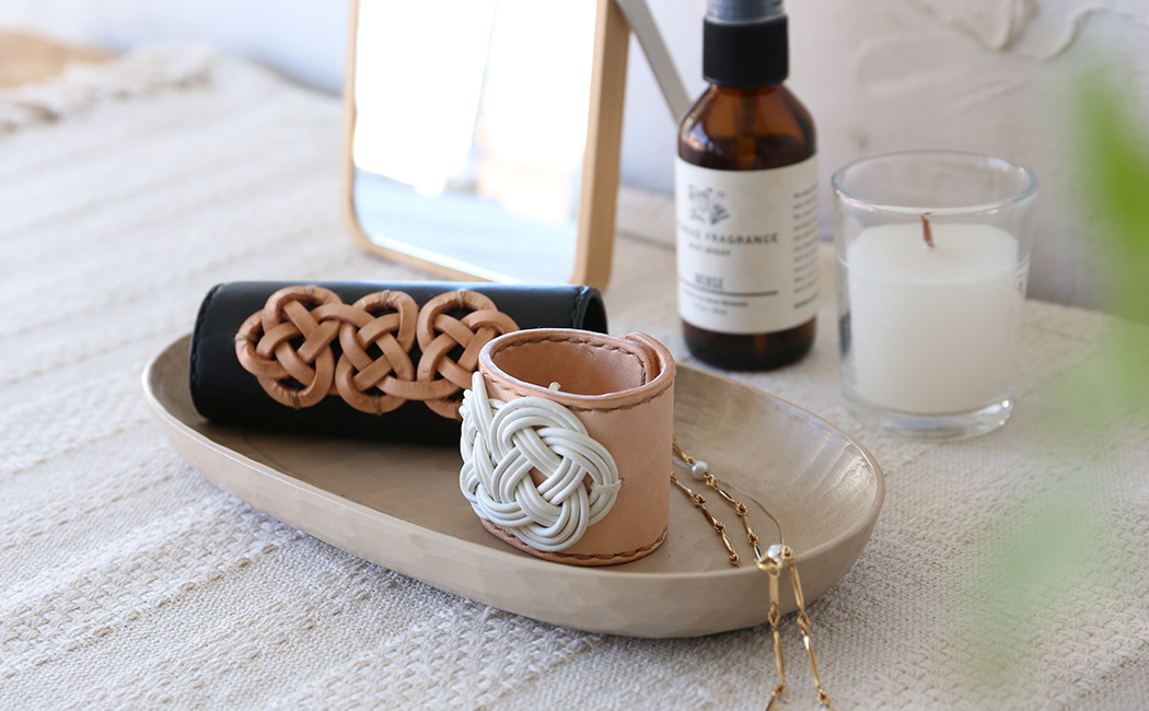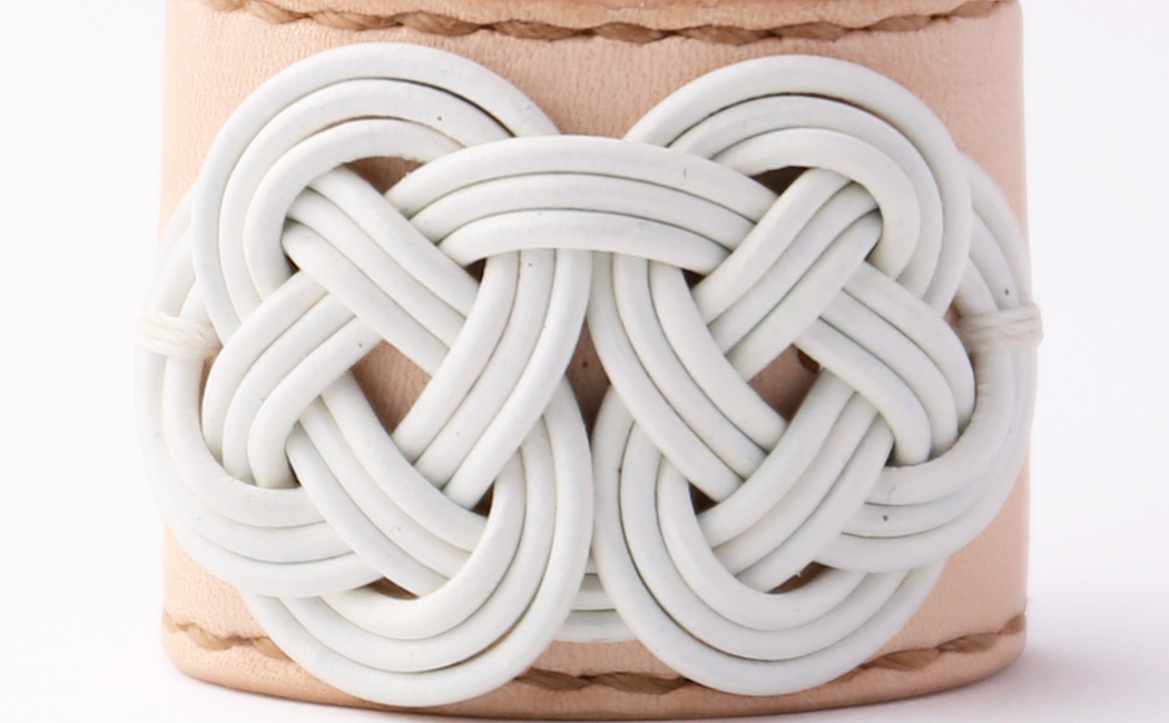 | 素材 | ベース: 日本原皮の牛ヌメ革(タンニンなめし) 飾り結び:牛革紐 |
